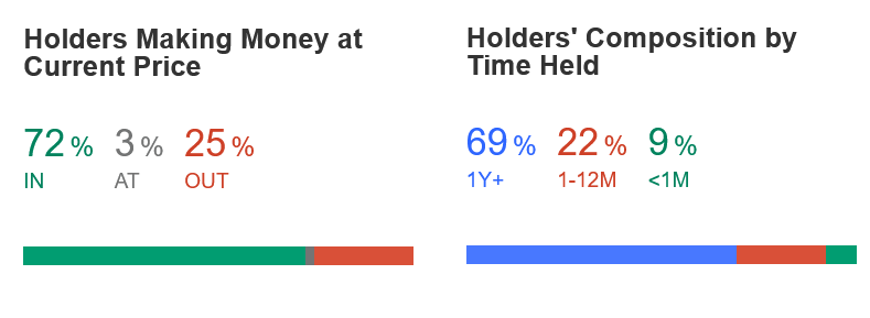 - It is also estimated that, at current prices, 72% of BTC addresses are already profitable.