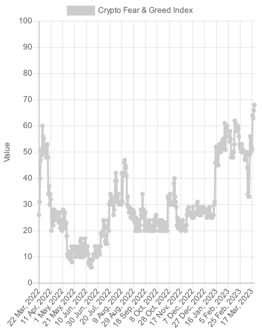 - According to CoinShares data, despite the BTC surge seen last week, investment crypto products emptied for the sixth week in a row - USD 95 million was withdrawn (USD 255 million was withdrawn the week before). It is commented that this was partly due not to negative sentiment, but to investors needing to ensure liquidity during the "bank crisis" as was the case during the COVID panic in March 2020.