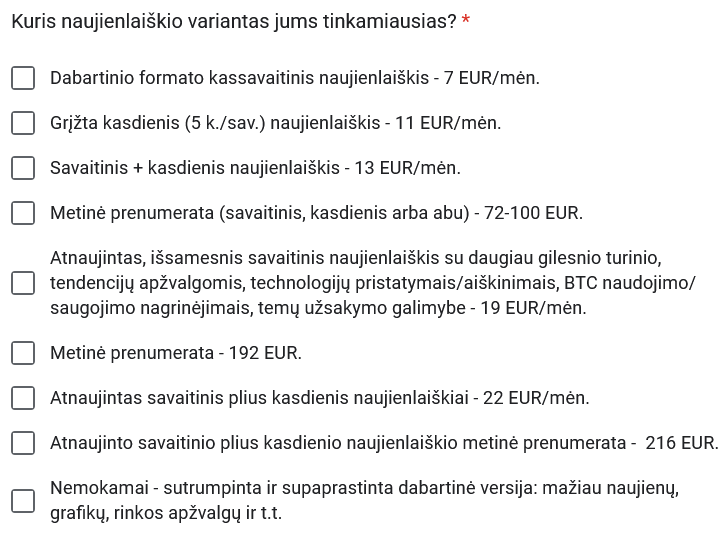 Ačiū jau sudalyvavusiems apklausoje dėl DESSENTER ateities! Labiausiai tikėtina, kad jau nuo kitos savaitės pradėsiu eksperimentuoti su mokama naujienlaiškio versija. Tuo pačiu, kviečiu ir kitus skaitytojus sudalyvauti apklausoje (žemiau esantis apklausos paveiksliukas nuves į pačią apklausą), kas man padėtų tiksliau nuspręsti, kurios mokamos versijos link turėčiau judėti. Ir kaip visada, jei turite kitų idėjų ir pasiūlymų dėl naujienlaiškio, rašykite linas[@]dessenter.io . Ačiū!