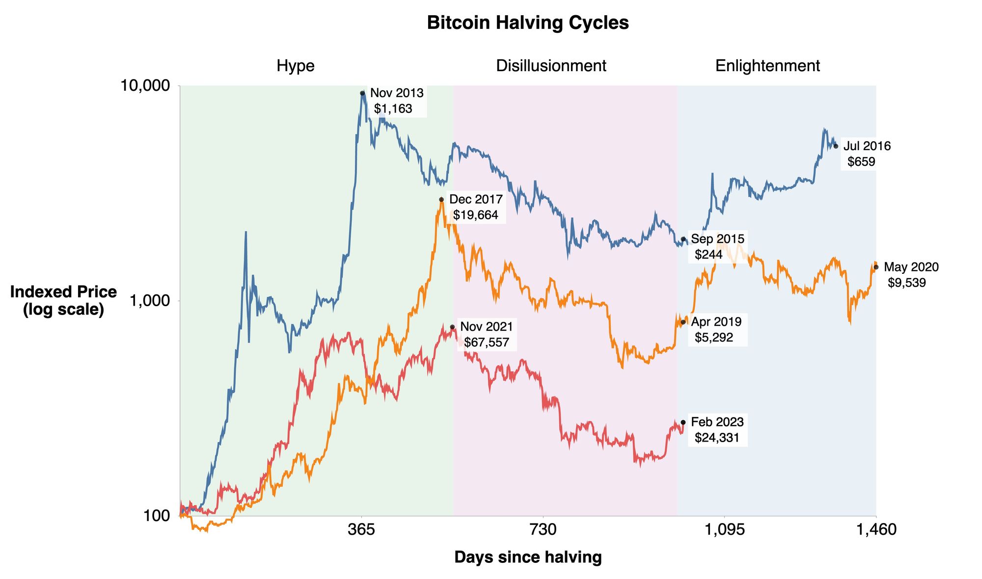 - "Riot Platforms" viceprezidentas Pierre'as Rochardas palygina buvusius Bitkoino "padalijimo" ciklus (BTC "kasėjams" išmokamas atlygis už rastą BTC blokčeino bloką kas 4 metus sumažinamas perpus) ir konstatuoja, kad dabar mes jau esame "Nušvitimo" etape. (Priminimui - buvę dalykai nebūtinai reiškia, kad jie kartosis.)