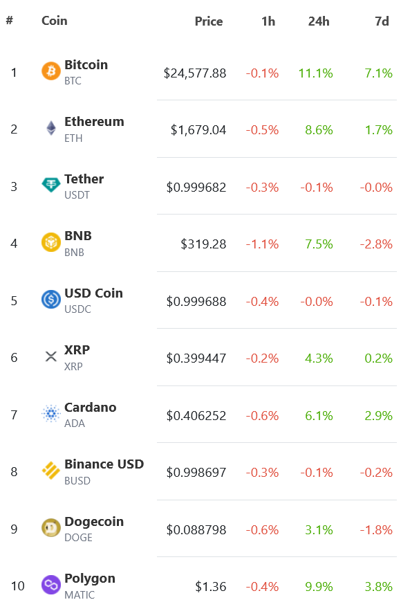 Nauju staigiu šuoliu turbūt daugelį nustebinęs BTC perkopė USD 24 700, iš paskos patempdamas ir likusią rinką. Ethereum (ETH) taip pat pašoko, bet šiame etape vėl atsilieka nuo BTC. Kainos šiąnakt nusistovėjo ir kol kas juda be aiškios krypties.
