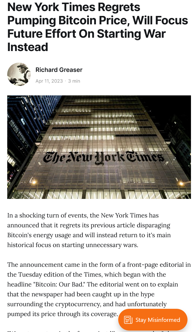 Bet būta ir svarbesnių pastabų, kad, pvz., NYT Teksase nekalbino elektros tinklų atstovo, realiai pagrindinio žmogaus, žinančio, kaip čia kas veikia su BTC "kasimu", taip pat toliau įrodinėta, kodėl NYT pasirinkta metodologija yra netinkama.