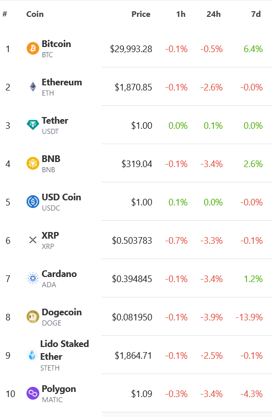 BTC toliau išlieka šalia USD 30 000 lygio ir po šįryt matyto pigimo iki USD 29 900 atrodo stabilizavosi. ETH, šiandien laukiantis Dienos temoje aptarto svarbaus savo blokčeino atnaujinimo, atpigo stipriau, o BTC dominavimas rinkoje dar išaugo. Bet kuriuo atveju, nepamirštam menko likvidumo rinkoje, dėl kurio kainų svyravimai ir sustiprėja. Be to, spaudimą kainai gali padidinti ir amerikiečiai, jei dėl prasidėjusio mokesčių mokėjimo jie nuspręstų parduoti BTC.