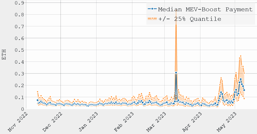 - Kol BTC "kasėjai" skaičiuoja dėl padidėjusių mokesčių gerokai išaugusias pajamas, panašias funkcijas atliekantys Ethereum (ETH) tvirtintojai (validators) dėl vadinamųjų "memecoinų", pvz., pepe (PEPE), karštinės gavo ne tik daugiau pajamų dėl išaugusių mokesčių už patvirtintas operacijas, bet ir už manipuliavimą jų eiliškumu. Apie šią kontroversišką taktiką, vadinama MEV (maximal extractable value), rašiau ir čia.