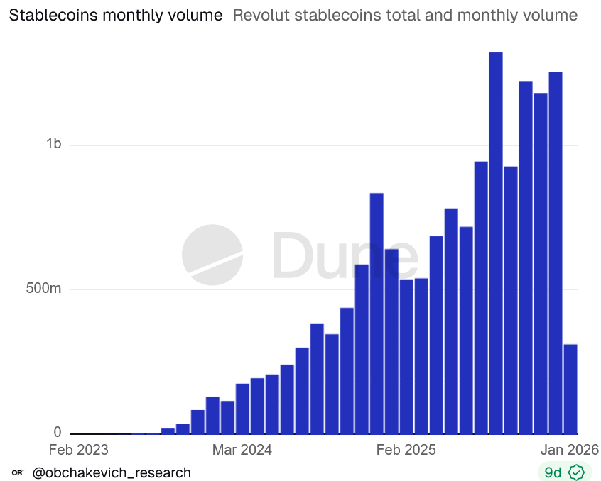 - Tuo metu, nepriklausomas analitikas Alex Obchakevich skaičiuoja, kad steiblkonų mokėjimai per "Revolut" pernai išaugo išaugo 156%, kai bendrai mokėjmai šioje platformoje augo 39%. Steiblkoinų dalis, manoma, padidėjo nuo 0,3% iki 0,58% visų mokėjimų "Revolut".