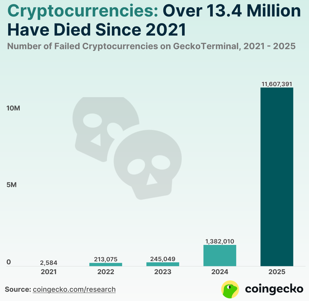 - 2025 m. buvo pažymėti milijonais altkoinų mirčių.