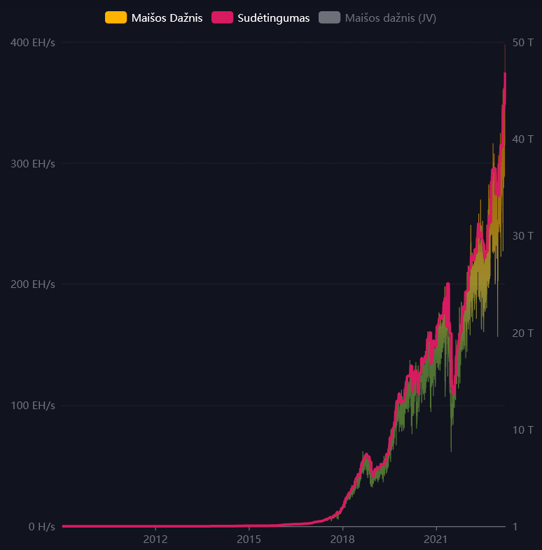 - BTC "kasimo" sudėtingumas pašoko 7,56% ir pasiekė naujas rekordines aukštumas, padidinamas "kasėjų" sąnaudas ir galbūt paskatindamas kai kuriuos jų parduoti daugiau BTC. Nuo metų pradžios, sudėtingumas padidėjo jau 38%, arba panašiai kaip ir "kasimo" pelningumas. Jis koreguojamas maždaug kas dvi savaites, kad vidutinis laikas, per kiek Bitkoino blokčeine atsiranda naujas blokas, būtų 10 min. Pastaruoju metu, prisijungus daugiau "kasėjų" ir rekordiškai išaugus BTC tinklo skaičiavimo pajėgumams, šis laikas prieš sudėtingumo pakoregavimą buvo nukritęs iki maždaug 9 min.