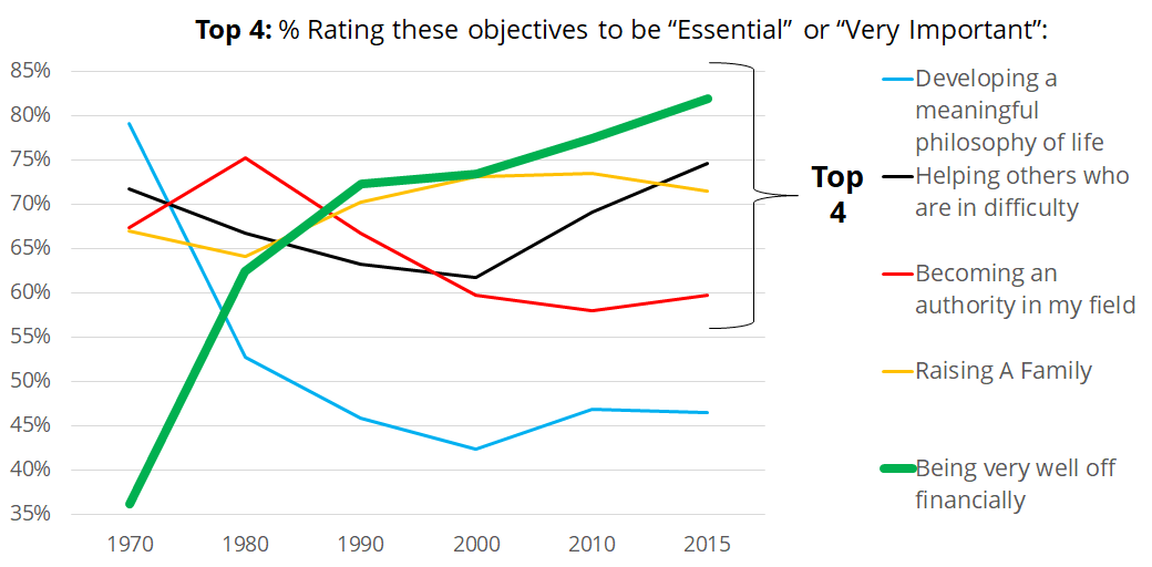 Tačiau ši mano kritika turi silpnų vietų - šita ponzi vienaip ar kitaip didina visuomenės pajamas/materialinę gerovę, sveikatos apsaugą, tarsi suteikdama ir daugiau laisvės “dvasingumo” reikalams. Bet tai neįrodo jos tvarumo. Be to, kaip klausė Tomas, kodėl tada vistiek jaučiamės vis mažiau laimingi? O gal tiesiog reikia peržiūrėti laimės apibrėžimą, kaip kartais statistikai ir centriniai bankai peržiūri infliacijos kriterijus, kad kiek sumažintų skaičius?
